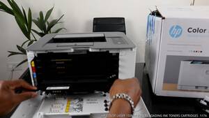 and home users. It delivers sharp, professional-quality prints at speeds of up to 18 pages per minute in black and 4 pages per minute in color. With built-in Wi-Fi and Ethernet connectivity, it allows seamless printing and easy sharing across multiple devices. Users can also print directly from smartphones and tablets using the HP Smart app. Lightweight and space-saving, this printer combines efficiency with vivid color output, making it the ideal solution for everyday professional printing needs.